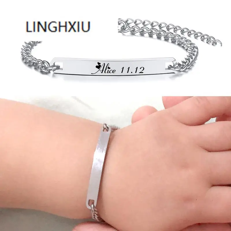 Best Personalized Kids Baby Chain Bracelet Stainless Steel Gold silver color Adjustable Engrave Boby Girls Name Message and You will save 10% or US $16.19 today